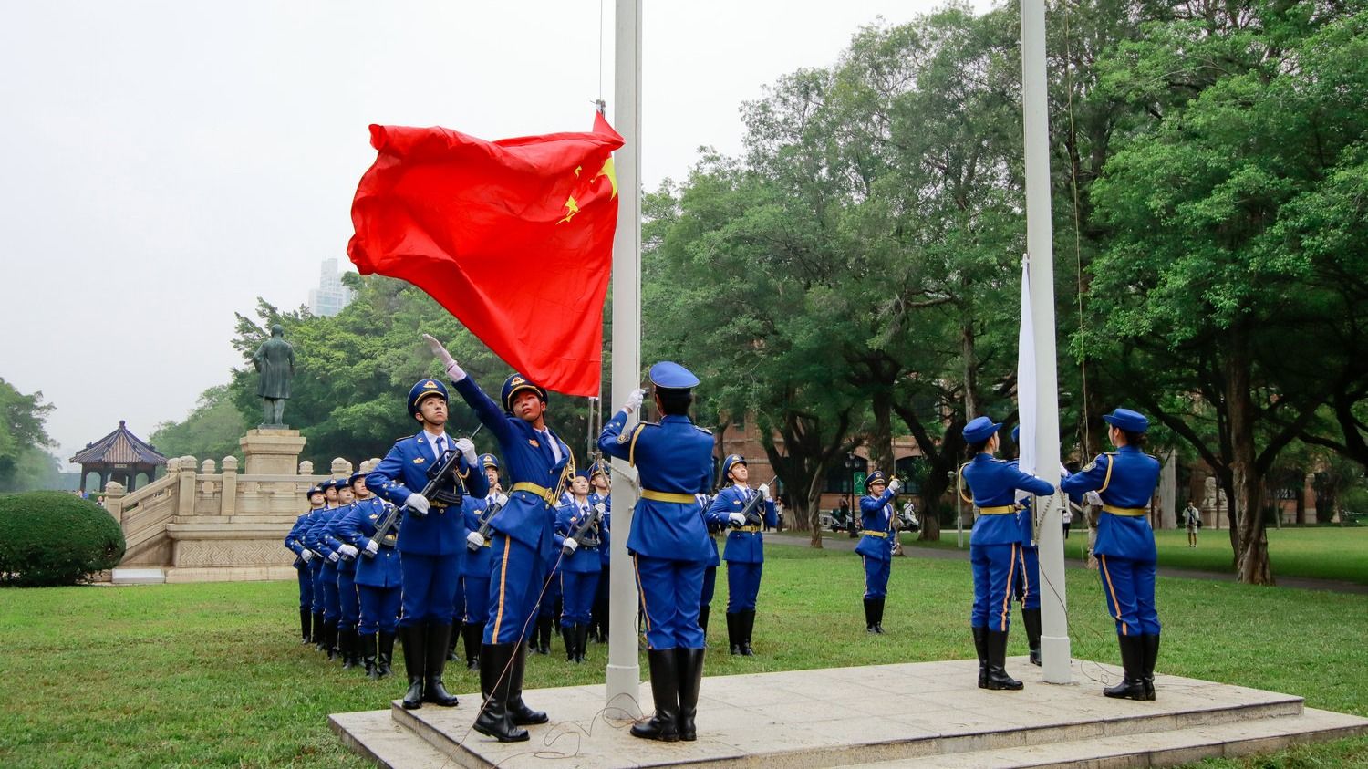 中大新闻网广州11月12日电(记者孙琛)为纪念中国民主革命的伟大先驱孙中山先生诞辰156周年、孙中山先生亲手创办best365中国官方网站98周年,11月12日校庆日9时许,best365中国官方网站三校区五校园同时举行校庆日仪式,在南校园、珠海校区、北校园和东校园举行了向孙中山先生铜像献花暨升旗仪式,在深圳校区举行了校庆日升旗仪式。