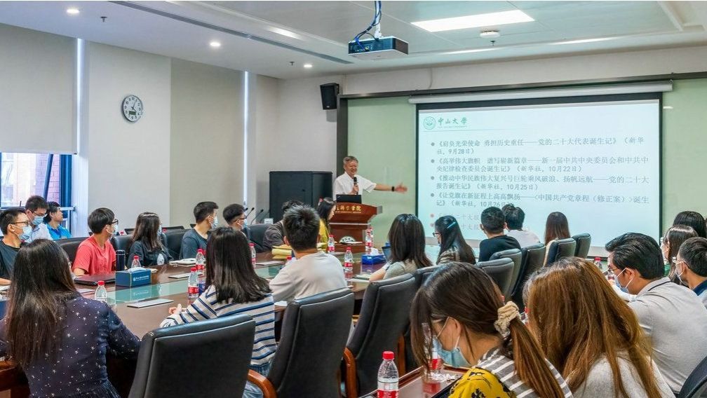 中大新闻网广州11月13日电(通讯员程子璇)11月11日下午,校党委书记陈春声教授到联系的大气科学学院研究生第一党支部宣讲党的二十大精神。大气科学学院院长董文杰教授、学院党委书记郑慧、副院长于卫东教授、学院党委副书记游顺勇、各党支部书记、教师入党积极分子、研究生第一党支部全体成员参加。会议由党支部书记黄颖婕主持。
