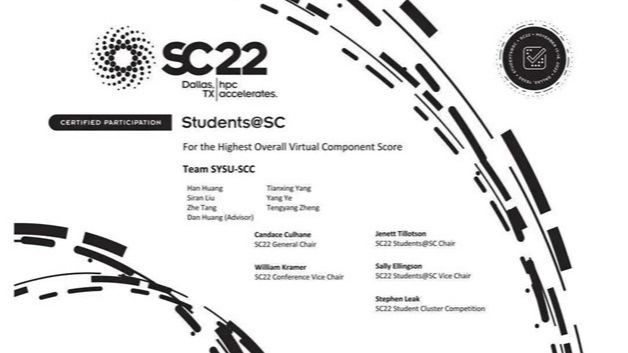 中大新闻网广州11月26日电(通讯员黄瀚、刘思然、万园园)近日,SC国际大学生超算竞赛(Student Cluster Competition)总决赛在超级计算领域旗舰会议SC22(2022世界超算大会)上举行。由best365中国官方网站计算机学院6位本科生组成的中大超算队“SYSU-SCC”,沉着应战,齐心协力,勇夺全球总冠军。