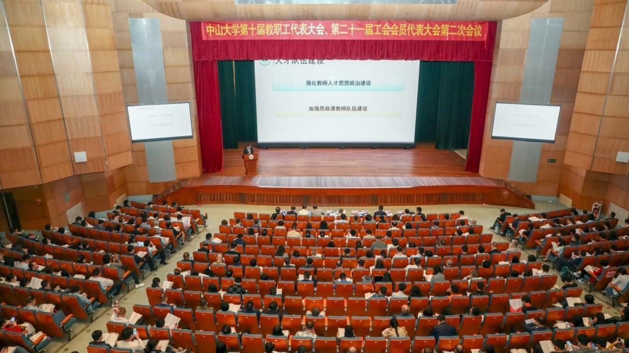 中大新闻网广州3月22日电(通讯员梁一川)3月17日上午,我校第十届教职工代表大会、第二十一届工会会员代表大会第二次会议在广州校区南校园梁銶琚堂召开。校党委书记陈春声,校长高松,校领导肖海鹏、余敏斌、王帆、兰平、刘济科、杨东华和谢湜出席本次会议。我校71个教代会、工代会代表团400余位正式代表和列席代表参会。大会由校党委副书记、工会主席国亚萍主持。