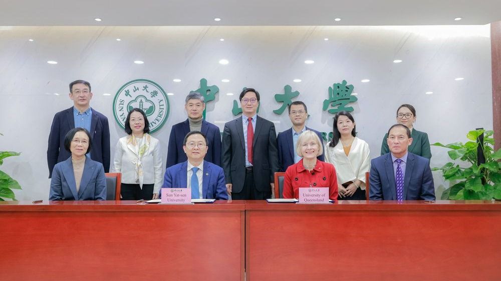 中大新闻网广州4月4日电(通讯员黄孟邻)3月29日,澳大利亚昆士兰大学(University of Queensland)校长Deborah Terry教授、副校长Rongyu Li先生等一行3人来访我校。校长高松院士在广州校区南校园中山楼贵宾厅会见来宾。医学部、心理学系、旅游学院、先进能源学院、教务部、国际合作与交流处代表陪同会见。