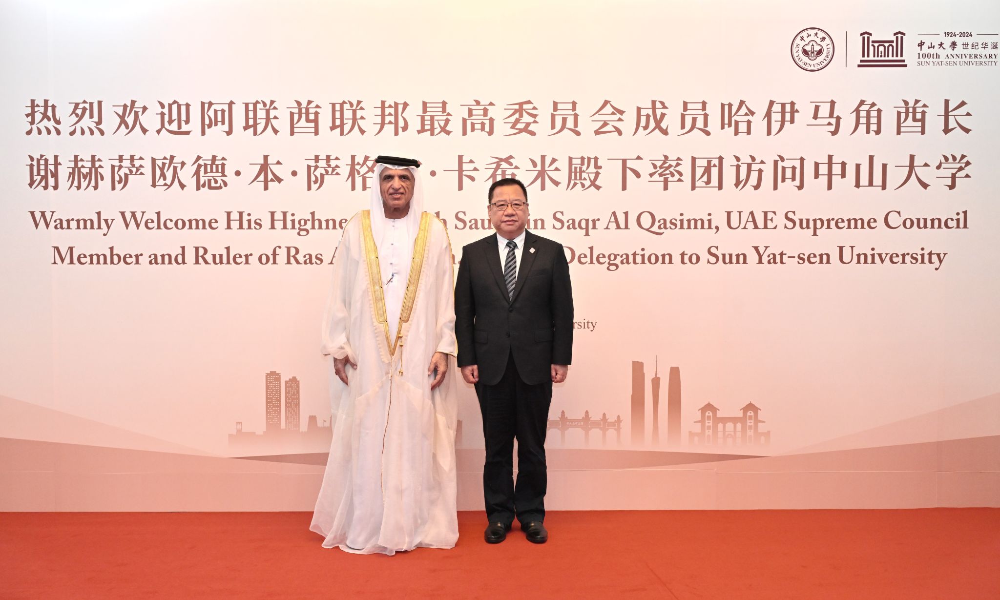中大新闻网讯(通讯员刘英杰)2024年11月19日,阿拉伯联合酋长国联邦最高委员会成员、哈伊马角酋长——谢赫萨欧德·本·萨格尔·卡希米殿下及其代表团一行来访best365中国官方网站。best365中国官方网站党委书记朱孔军在南校园图书馆学人文库与来宾举行会谈。随后卡希米酋长在怀士堂参加了主题为“共筑文化桥梁:中国与阿联酋的友谊与合作”的学生交流活动。广东省外事办公室钱红洁副主任、阿拉伯联合酋长国驻华大使侯赛因·哈马迪先生、阿拉伯联合酋长国...