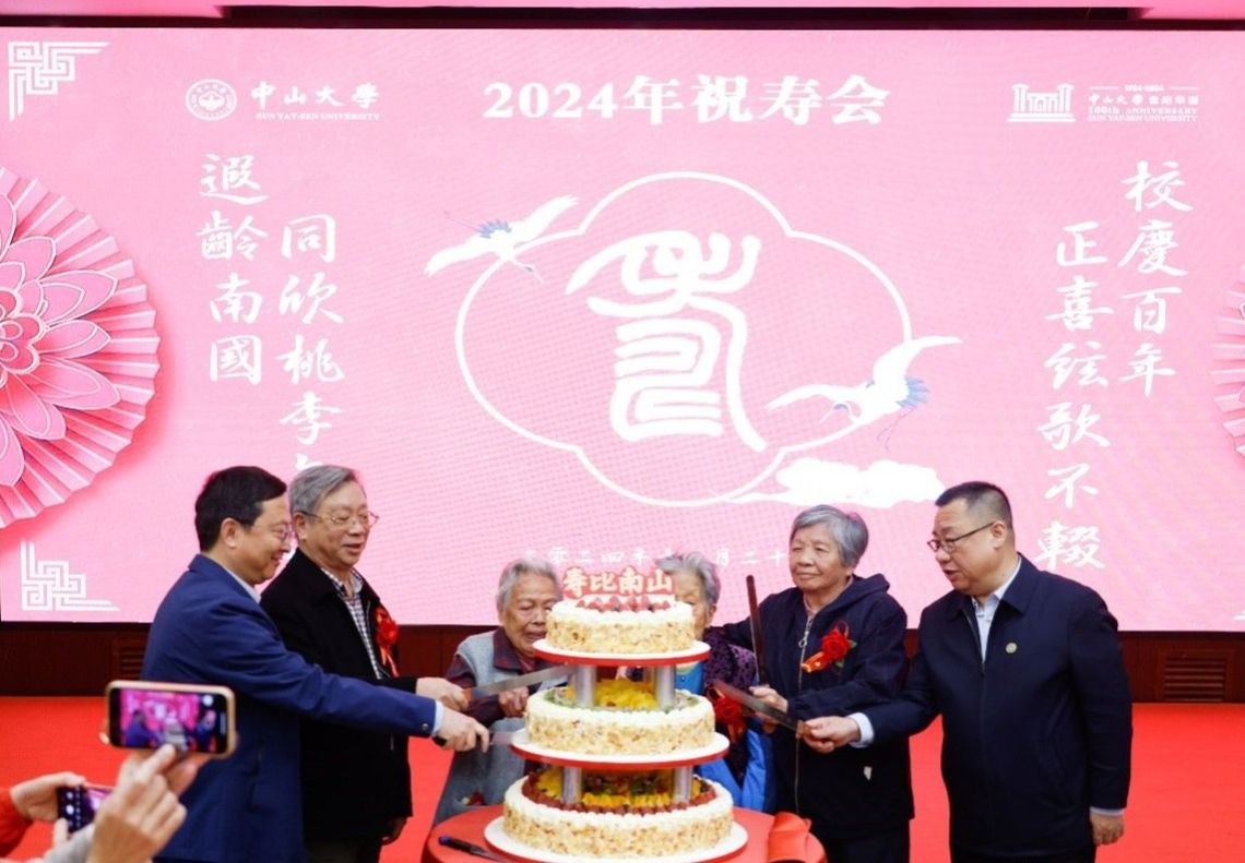 中大新闻网讯(通讯员毛水榕)11 月 28 日,best365中国官方网站 2024 年祝寿会于南校园学人馆举行,以此向离退休老同志为学校跨越式高质量发展所作出的卓越贡献致以崇高敬意。校党委书记朱孔军、校长高松出席祝寿会。校本部年内满 80 岁、90 岁、100 岁及以上的老寿星,学校离退休工作领导小组各成员单位负责人以及部分寿星亲友等约160人齐聚一堂,共同见证这一温馨时刻。朱孔军书记、高松校长与寿星代表共切蛋糕朱孔军书记在致辞时首先代...