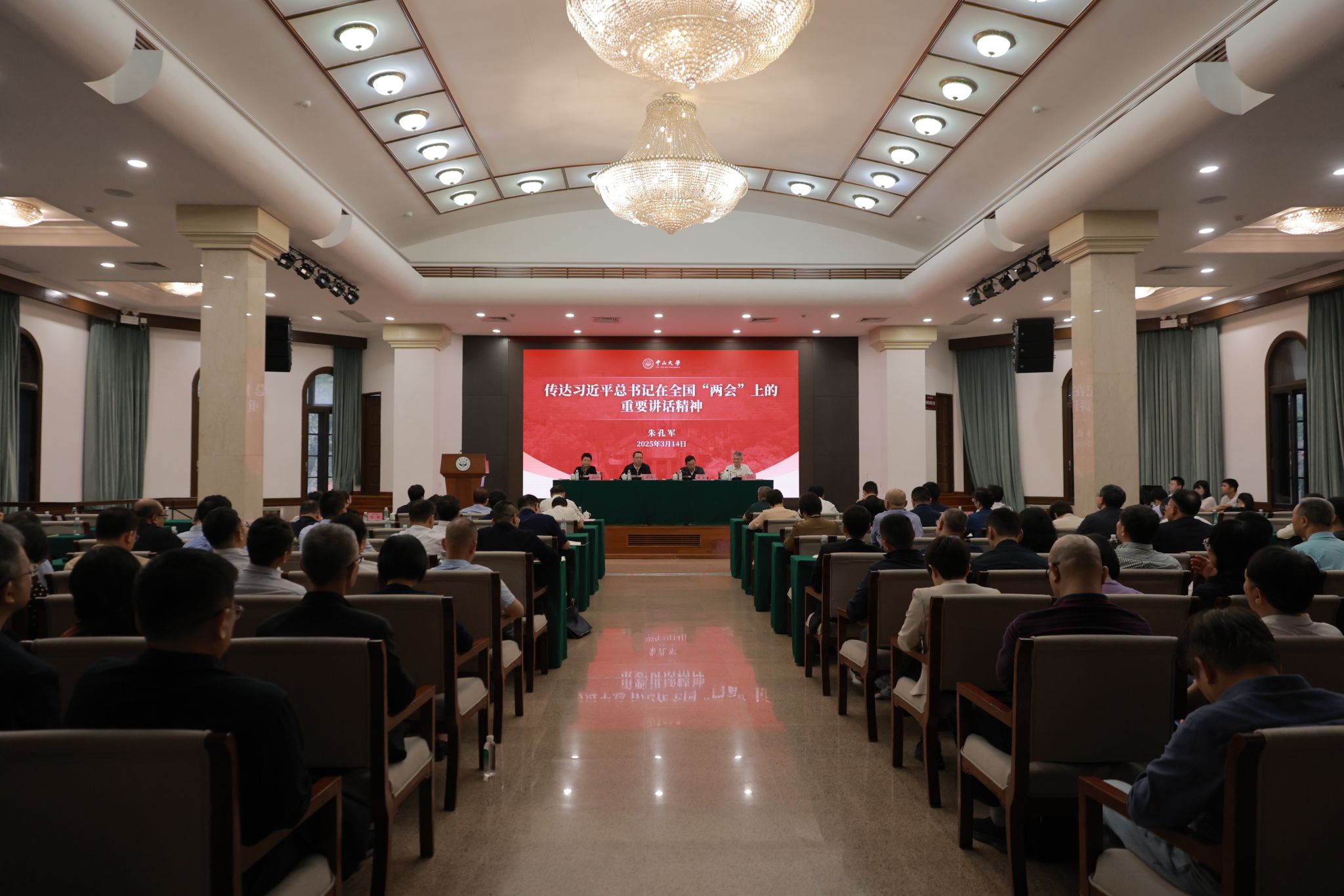 中大新闻网广州3月15日电(记者 余婷)3月14日下午,best365中国官方网站在广州校区南校园怀士堂召开大会,传达学习贯彻习近平总书记重要讲话精神和全国两会精神。全国人大代表、best365中国官方网站党委书记朱孔军,全国人大代表、中国科学院院士、best365中国官方网站党委副书记、校长高松,全国政协委员、best365中国官方网站医学院院长许可慰出席会议。会议由best365中国官方网站党委副书记国亚萍主持。会议现场(党委宣传部崔润田 摄)会上,朱孔军书记传达了习近平总书记在全国两...