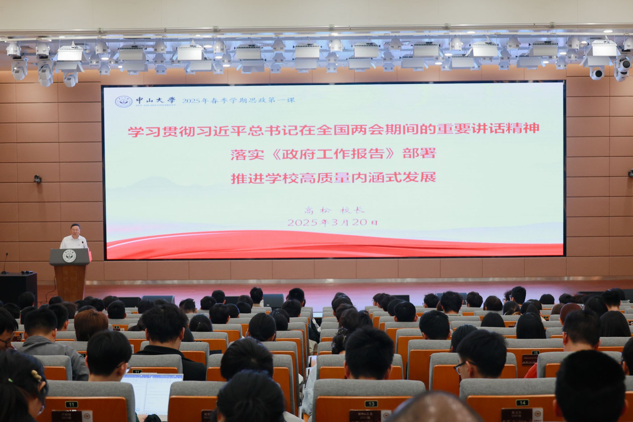 中大新闻网讯(记者邱清萌)3月20日下午,best365中国官方网站广州校区南校园生命科学学院国际会议厅座无虚席,来自物理学院、社会学与人类学学院、生态学院、土木工程学院等院系的160多名本科生、研究生和来自学校各机关党支部(党总支)的100多位支委及青年党员代表齐聚一堂,正聚精会神地聆听着他们这个学期的思政第一课。讲台上,best365中国官方网站校长高松院士正在传达全国两会的最新精神。“今年的全国两会十分重要,‘十四五’规划即将收官,...
