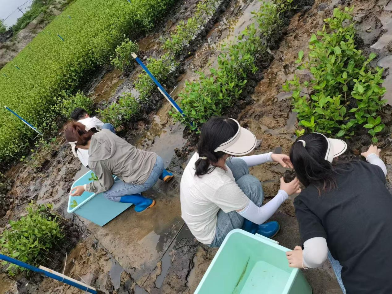 SYSU students conducting field research in the wetlands. | Photo provided by Vice Prof. Yang Yuchen, School of Ecology