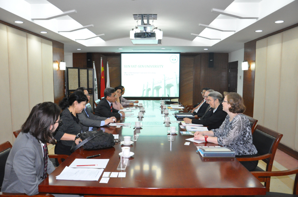 On the morning of March 31, 2015, a four-member delegation led by Dr. Warren K. Wray, Vice Chancellor for Global and Strategic Partnerships of Missouri University of Science and Technology (MUST), visited Sun Yat-sen University (SYSU). Members of the delegation also included Ms. Laura Stoll, Vice Provost and Dean of Enrollment Management, and Dr. Xiaoqing Liu, Professor of Computer Science at MUST.