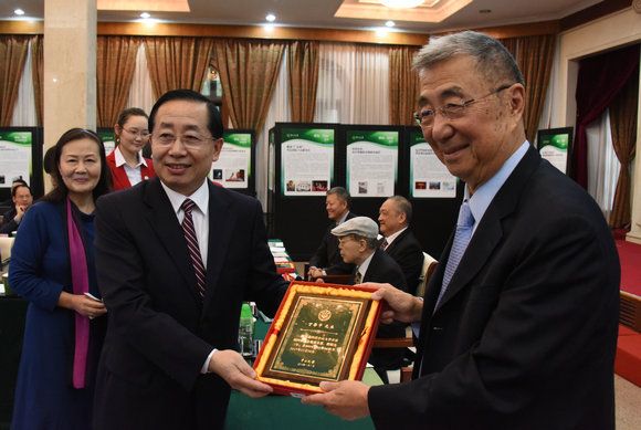 Secretary Zheng Detao presenting certificate of appointment to Prof. Samuel Chao Chung Ting, member of the First SYSU Advisory Board