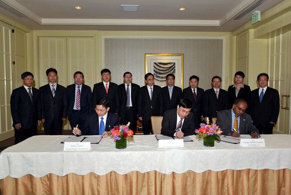 On the morning of September 23, under the witness of Mr. Zhu Xiaodan, Governor of the People’s Government of Guangdong Province, Sun Yat-sen University, Carnegie Mellon University and People’s Government of Shunde District, Foshan City signed a Memorandum of Understanding (“MOU”) in San Francisco, USA. Prof. Xu Ningsheng, President of Sun Yat-sen University, Dr. Subra Suresh, President of Carnegie Mellon University and Mr. Huang Xizhong, Chief Executive of People’s Government of Shunde District, Foshan City attended the ceremony and signed on the memorandum. The signing parties of the MOU also included Guangdong Science and Technology Department and the People’s Government of Foshan Municipality.
