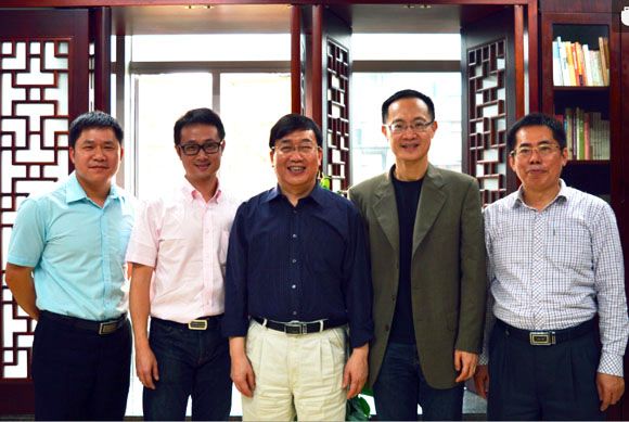 President Xu Ningsheng (middle) met with alumnus Lin Bin (second from right) and took a group photo.