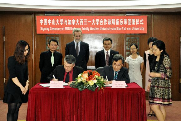 After the meeting, SYSU Vice President Zhu Xiping and TWU Vice President Philip Laird signed a MOU on behalf of the two universities. The two sides agreed to promote cooperation in teaching and research. Under this framework, TWU will help the Department of Psychology of SYSU to develop Masters Program in Counselling Psychology and enhance exchanges between teachers and students.
