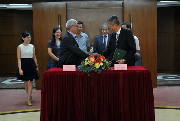 After the meeting, on behalf of SYSU, Executive Deputy Secretary and Vice President Chen Chunsheng signed a MOU on academic exchange with Vice-President of Université Sorbonne Nouvelle Paris 3 Emmanuel Fraisse. At the early stage of cooperation, the two sides plan to launch a postgraduate exchange program and an internship program between the School of International Studies of SYSU and Université Sorbonne Nouvelle Paris 3.