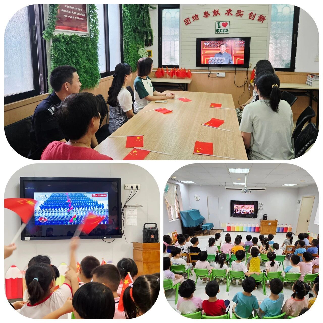 北校园附属幼儿园党支部组织党员同志和孩子们观看纪念中国人民抗日战争暨世界反法西斯战争胜利80周年大会