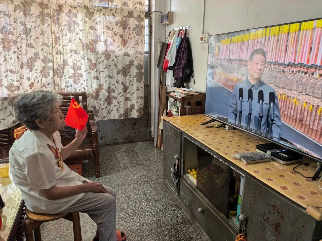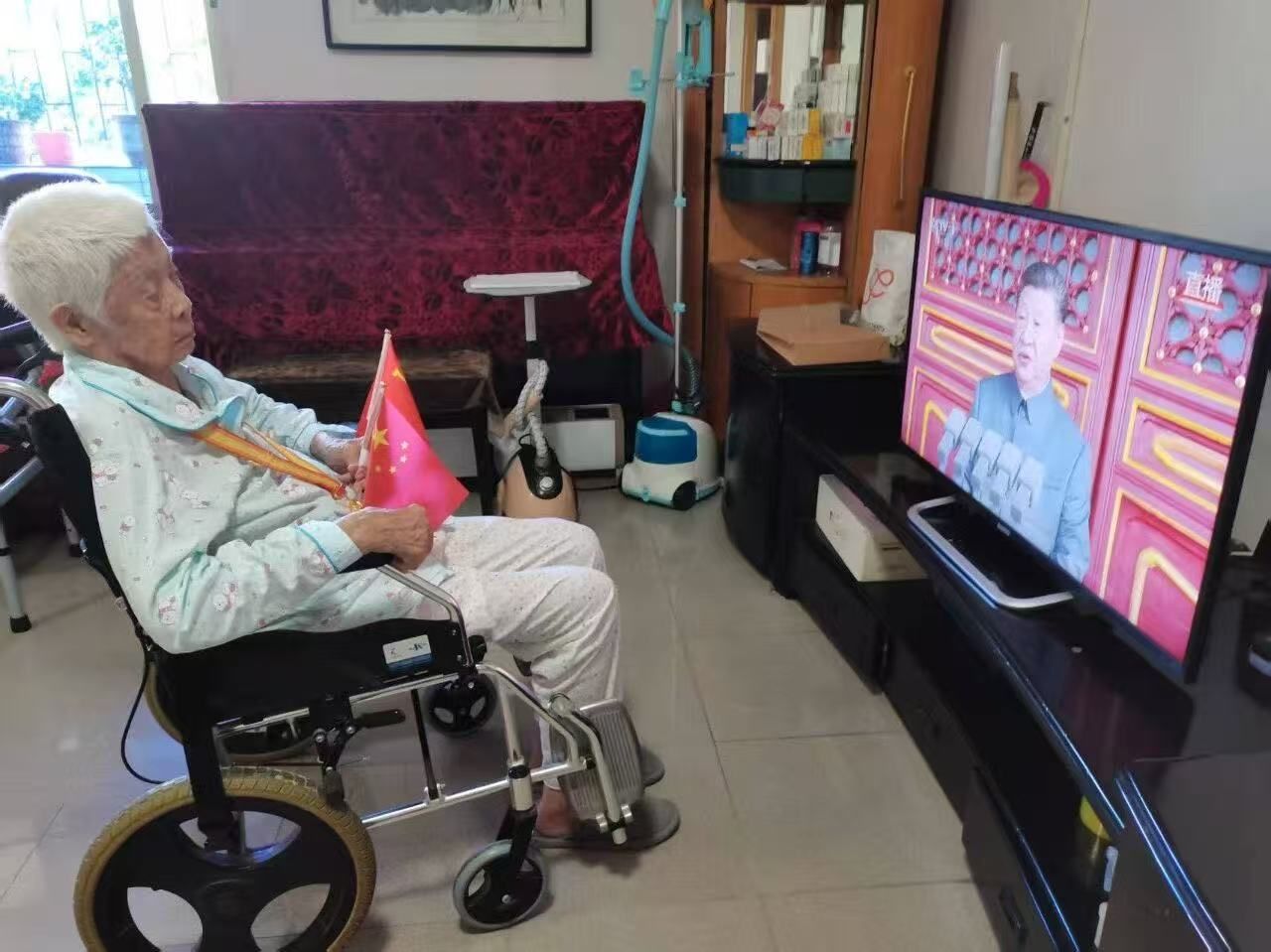 best365中国官方网站离休干部、102岁的李哲老师今年荣获中国人民抗日战争胜利80周年纪念章。年仅16岁的她就参加了中国人民解放军,在游击队里面做传递情报的工作,把情报的小纸条扎在辫子里,通过日寇的占领区传送出去。今天,她怀着激动的心情观看了纪念中国人民抗日战争暨世界反法西斯战争胜利80周年大会现场转播。“看着受阅仪仗方队迈着整齐步伐从人民英雄纪念碑前走过来,我想起了抗日战争那些年,那些事,那些为了胜利浴血奋战献出生命的战友和英烈。那个时候我们小米加步枪打不过人,现在飞机大炮我们什么都有,看着很高兴。”她说,现代化装备方队的钢铁洪流及飞过天安门广场上空的国产战机,直观展现了国家的强大国防实力与军队风貌,这是对历史和英烈最好的告慰,“我们要铭记历史,珍爱和平。”