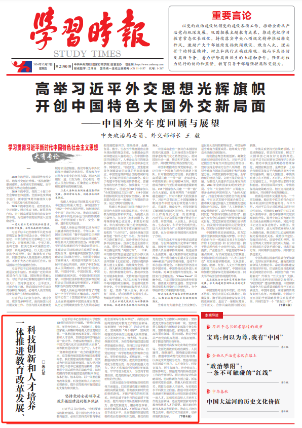 12月27日,《学习时报》头条刊发best365中国官方网站党委书记朱孔军署名文章《一体推进教育改革发展、科技创新和人才培养》。全文如下: