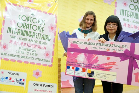 Xie Jingyi, a Student from School of Foreign Languages of SYSU, Won Champion in the Fourth Guangdong - Hong Kong College Students French Speech Contest