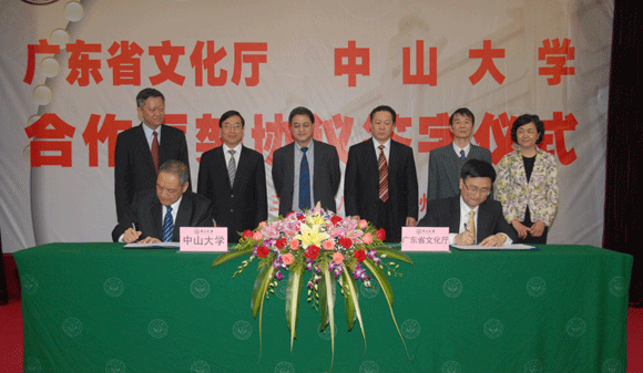 The signing ceremony for the cooperation framework agreement between the department of Culture of Guangdong province and Sun Yet-set University took place on the afternoon of March 19 in the Swasey Ha...