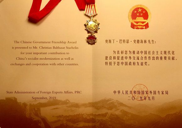 Professor Staehelin wins Chinese Government Friendship Award