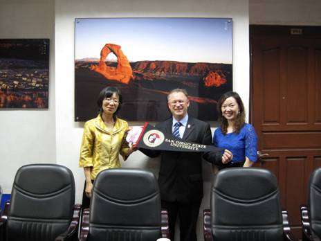 On June 4, Mr. Brian P. Blake, the person in charge of cooperative project from San Diego State University of USA, and Mrs. Fan Lina, director of the project management office in China, visited the Sc...
