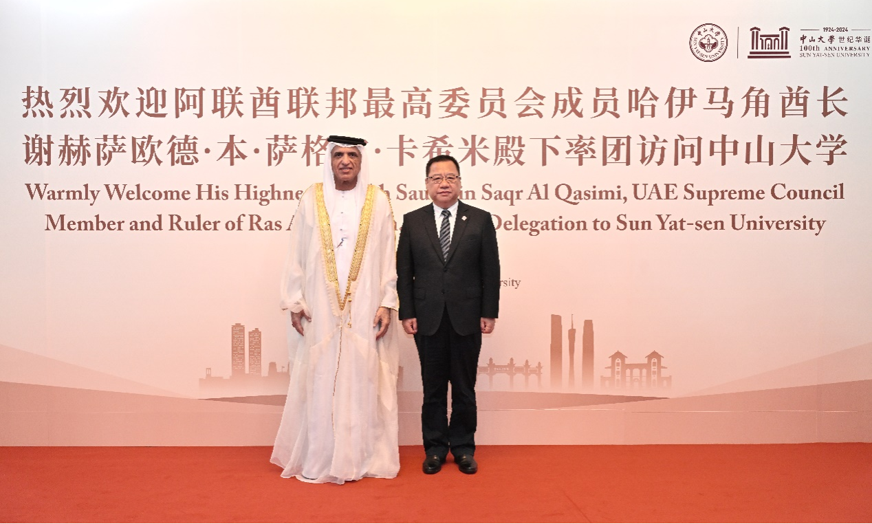 Sheikh Saud bin Saqr Al Qasimi, United Arab Emirates Supreme Council Member and Ruler of Ras Al Khaimah (RAK), along with a delegation from the region, visited Sun Yat-sen University (SYSU) on November 19. “Congratulations on the 100th anniversary,” Sheikh Saud wrote in his congratulatory letter. “It’s my honor to visit your wonderful campus and to learn how we can find cooperation that hel...