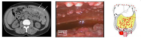 Figure 2. CT imaging of peritoneal carcinomatosis and extensive PC nodes in the abdominal wall.
