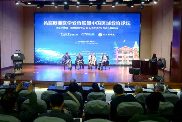 On March 16, 2017, Training Tomorrow’s Doctors for China-The first AMEE Conference in China, co-organized by the First Affiliated Hospital of Sun Yat-sen University, the Association For Medical Education in Europe (AMEE), and Zhongshan School of Medicine, was held in the First Affiliated Hospital at SYSU. The opening ceremony was presided over by Prof. Kuang Ming, Vice President of the First Affiliated Hospital. Prof. Xiao Haipeng, President of the First Affiliated Hospital; Mr. Jin Shengguo, Deputy Director of the Department of Health Science, Technology and Education, National Health and Family Planning Commission; Ms. Peng Wei, Deputy Director of Guangdong Provincial Health and Family Planning Commission; Prof. Li Mengfeng, Vice President of Sun Yat-sen University; and Prof. Ronald Harden, General Secretary and Treasurer of AMEE, delivered a speech respectively.