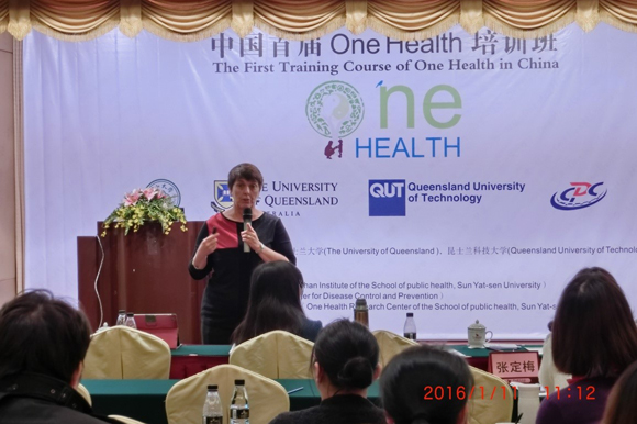 In order to promote One Health development in China, the first 5-day training course of One Health was held in Zhongshan city, Guangdong province, the hometown of Dr. Sun Yat-sen, on 11th January, 2016. This training was organized jointly by Sun Yat-sen University (SYSU), University of Queensland (UQ), and Queensland University of Technology (QUT), and undertaken by One Health Research Center of School of Public Health, SYSU and Zhongshan Center for Disease Control and Prevention (Zhongshan Research Institute of School of Public Health, SYSU).