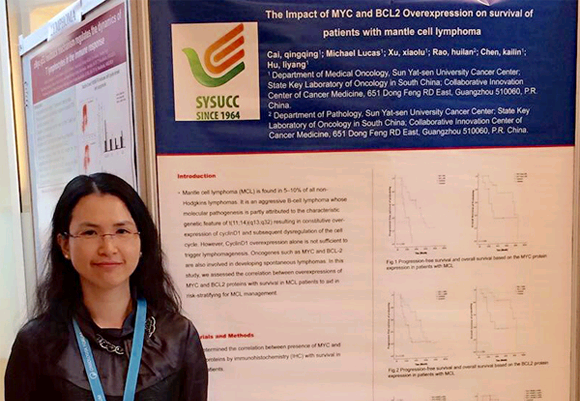 Professor Qingqing Cai from Department of Medical Oncology of Sun Yat-sen University Cancer Center (SYSUCC) was invited to speak at the meeting. She presented “the impact of MYC and BCL-2 over-expression on the prognosis of patients with mantle cell lymphoma". Professor Cai's team discovered that about 20% of patients with mantle cell lymphoma had high expression of both MYC and BCL-2, and these patients showed poor response to conventional treatment and dismal prognosis, suggesting more aggressive biological behavior in this kind of mantle cell lymphoma. New targeted therapy might further improve survival. Her presentation provided theoretical basis for the realization of “Precision Medicine” for mantle cell lymphoma. Professor Cai’s coherent description and exquisite slides were highly praised by the participants.