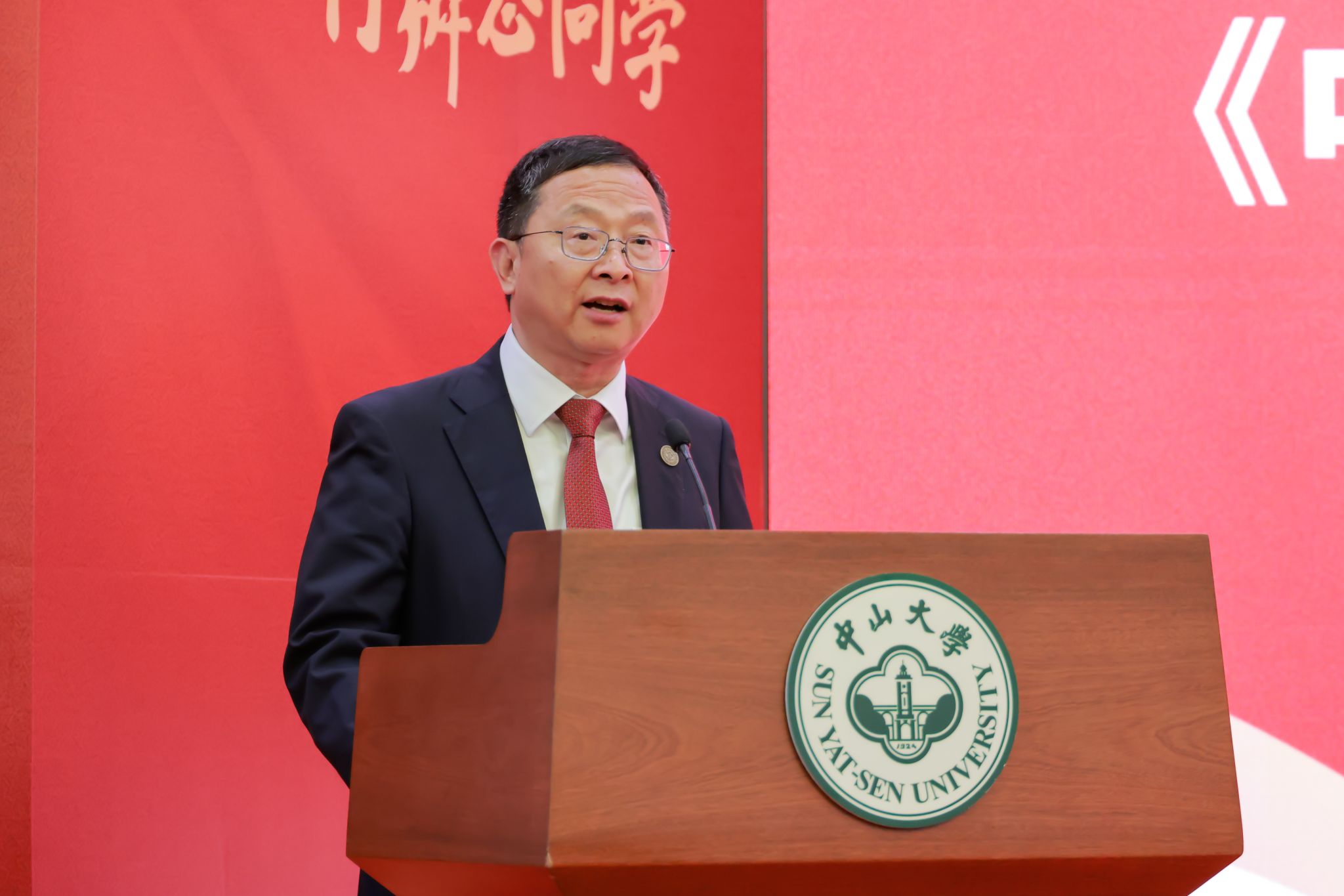 Chen Chunsheng, secretary of the CPC SYSU, delivers a speech at the 100th anniversary kick-off ceremony on November 12.