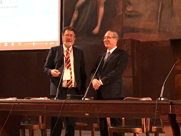 Professor Remo Ruffini introducing the historical connection of Marcel Grossmann Meetings with SYSU and President Luo Jun