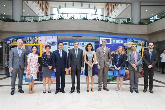 On the morning of September 14, 2017, a delegation comprised of the Ambassador for the European Union (EU) to China, Mr. Hans Dietmar Schweisgut, and a group of Consuls-General to Guangzhou from various EU member states visited Sun Yat-sen University’s (SYSU) Guangzhou East Campus to officially open an exhibition marking the 60th anniversary since the founding of the EU.