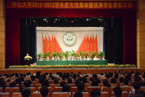 The 2011-2012 Advanced Collective & Outstanding Student Commendation Assembly was held in the K .K. Leung Hall on south campus in the afternoon on November 23. SYSU President Xu Ningsheng, Executive Deputy Secretary and Vice President Chen Chunsheng, distinguished guests and delegates of the donation units, leaders of functional departments at SYSU and the award-winning students, a total of over 1,000 individuals attended the assembly. The assembly was presided over by Deputy Secretary Zhu Kongjun.