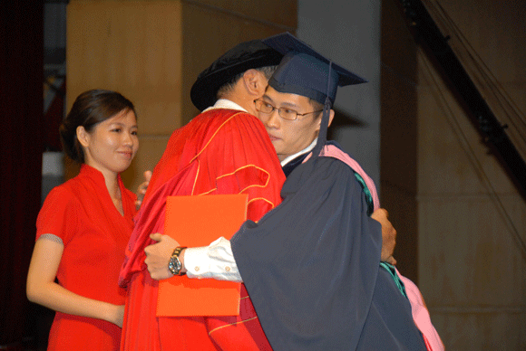 So many students hug our president during the ceremonies. Every time when a student receives the academic degree certificate, s/he always asks for a hug, and our president would say kindly: “sure!” Liu, a student from the School of Law, says excitedly to his friend: “it felt so warm when I hugged our president!” She also says that she doesn’t feel like leaving, so she couldn’t help hugging our president. It pains her to see our president standing there for such a long period of time, so she hugged him to express her feeling.