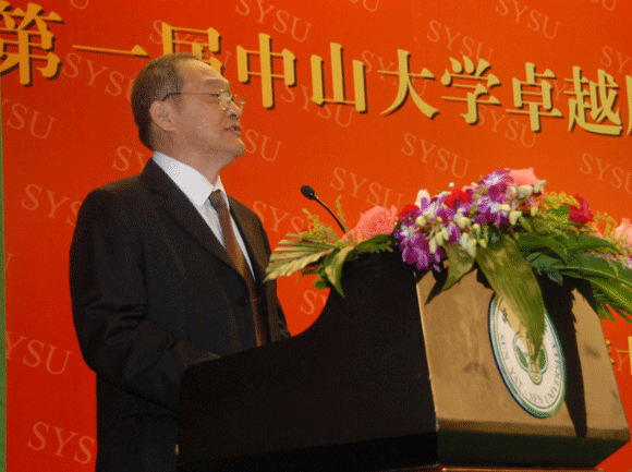 President Huang said that as an academic community, the university should be a prism. The three sectors--teachers, faculty and students, who made up the university, form the three sides of the prism. The people in the university should embody only one goal: to dedicate themselves to the developing of the academic community. It depends on the loyal service of every individual in the community to achieve the goal. When we evaluate the standards of the “Excellent Service”, we should not confine it to the achievements in academic field or the contributions of the management. An important standard of evaluating the excellent service is the loyalty to the cause. There is a limit to one’s life, but Sun Yat-Sen University is to last forever. In the academic community of SYSU, we carry the common ideals, the common goals, the common causes, the common interests, the common honors, and we have the responsibility to make it better. Whoever served in SYSU, his or her every effort would leave a mark on the path of the development of SYSU. The honor of SYSU is made by the loyal service of the people of SYSU, thus the honor of SYSU is shared by everybody at SYSU.