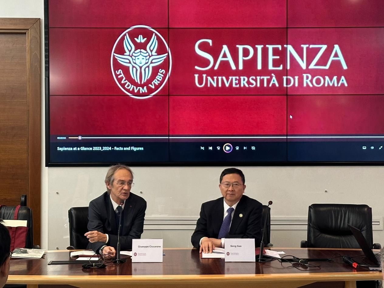 Prof. Song Gao (right) and his delegation visit Sapienza University of Rome.