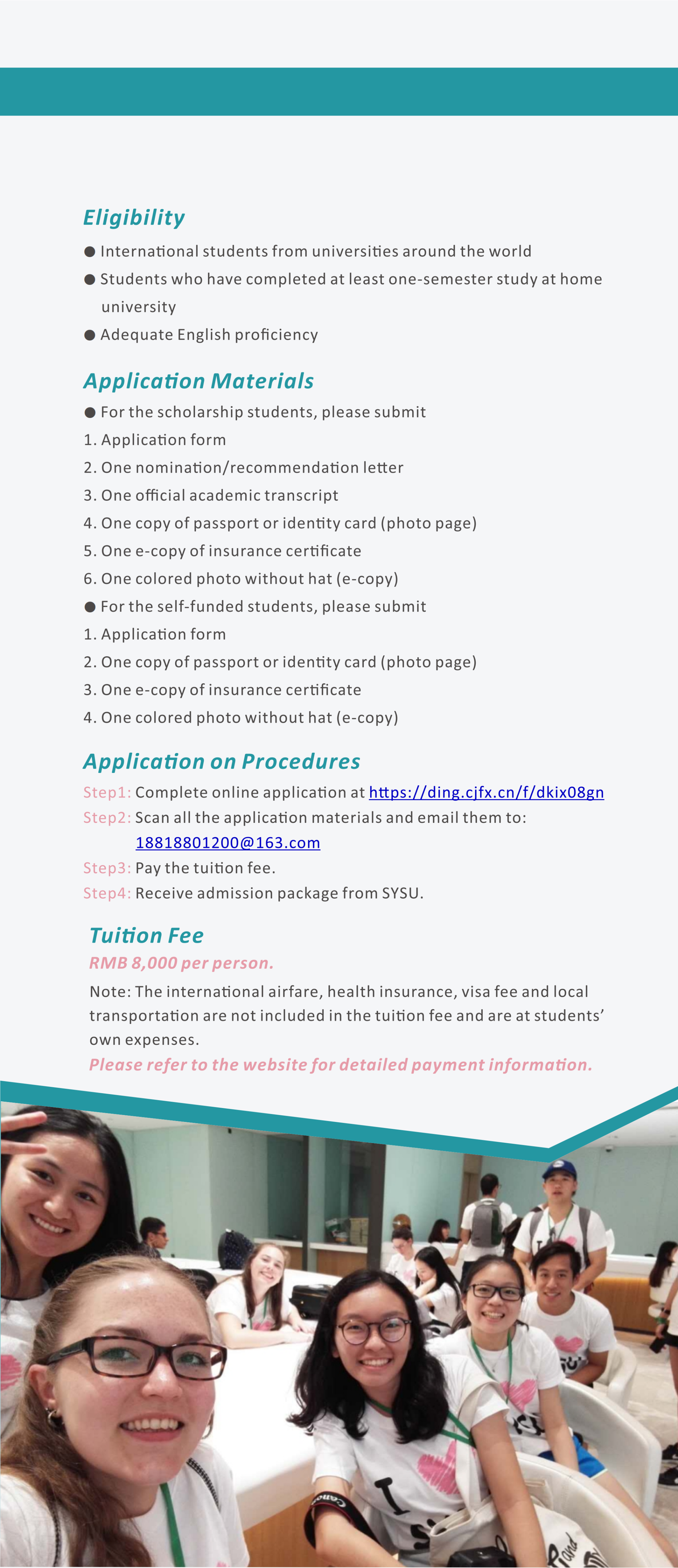 The 2025 Sun Yat-sen University International Summer Program(ISP)warmly invites students from universities around the world to embark on an extraordinary academic adventure. From July 20 to August 3, this immersive two-week program offers a unique blend of academic excellence, cultural exploration, and unforgettable experiences: immerse yourself in cutting-edge courses guided by top-tier scholars, explore the vibrant traditions of Lingnan culture, and experience the dynamic innovation of the Greater Bay Area.
