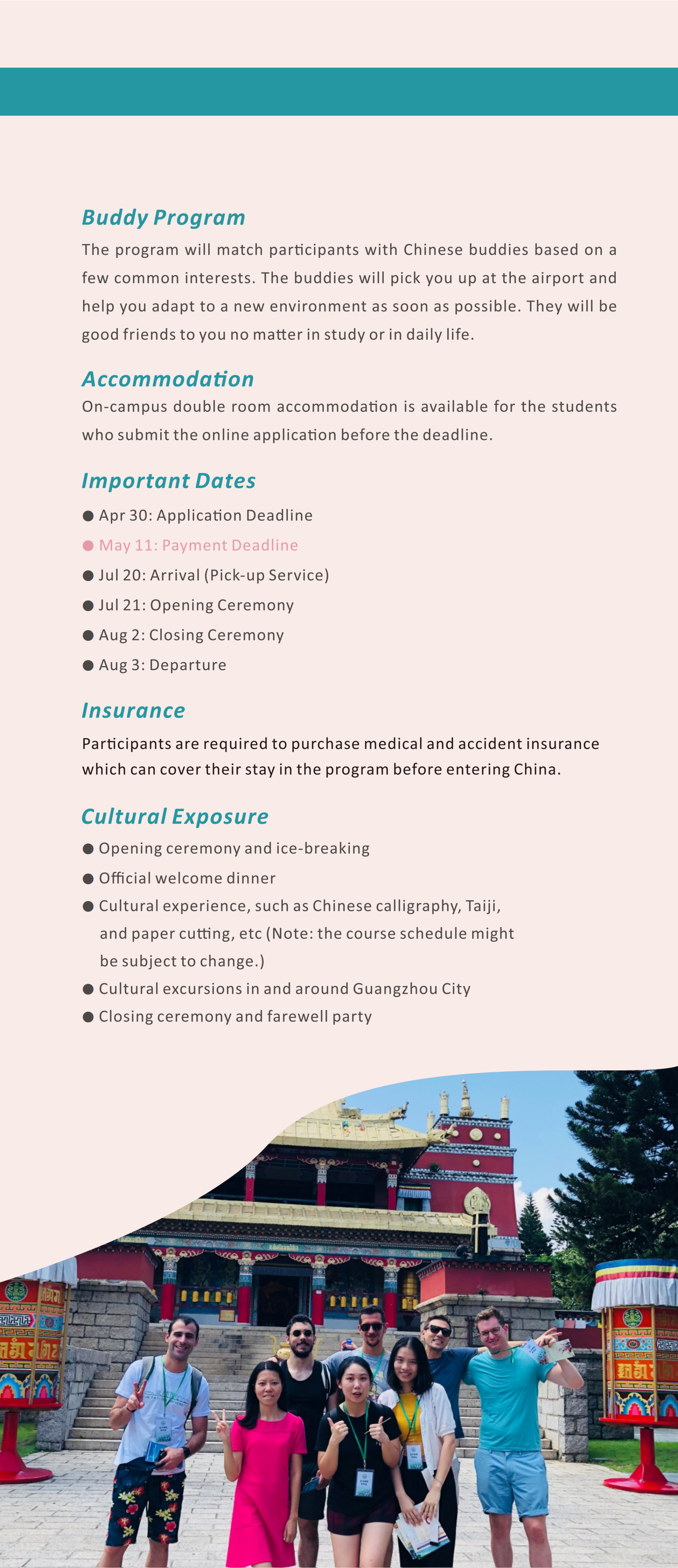 Don’t miss this opportunity to study, explore, and connect in the heart of China! This summer, we welcome you to join us at the historic and picturesque campus!