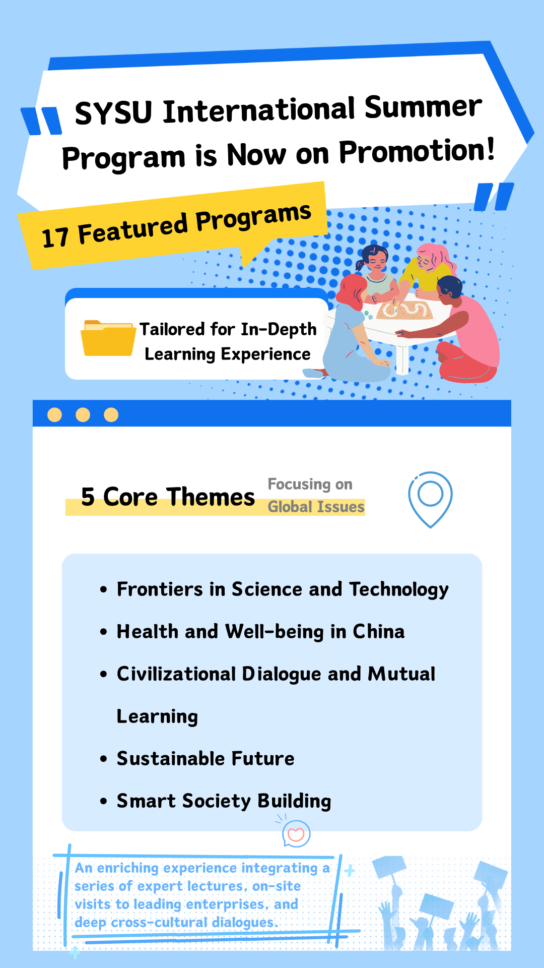 Ready for an unforgettable academic and cultural adventure? Join us at Sun Yat-sen University (SYSU) in Guangzhou—the vibrant heart of Southern China! This summer, immerse yourself in a journey of new perspectives, lasting friendships, and fresh inspiration.