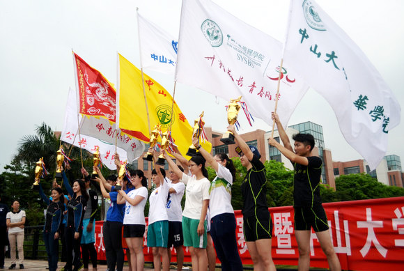On May 14, 2016, the SYSU Dragon Boat Racing was held on the East Campus of Sun Yat-sen University (SYSU). 41 teams (16 women’s teams and 25 men’s teams) from 13 schools and departments participated in the racing. The organizer also invited two guest teams: the SYSU alumni dragon boat racing team, and the dragon boat racing team of Huazhong University of Science and Technology (HUST).