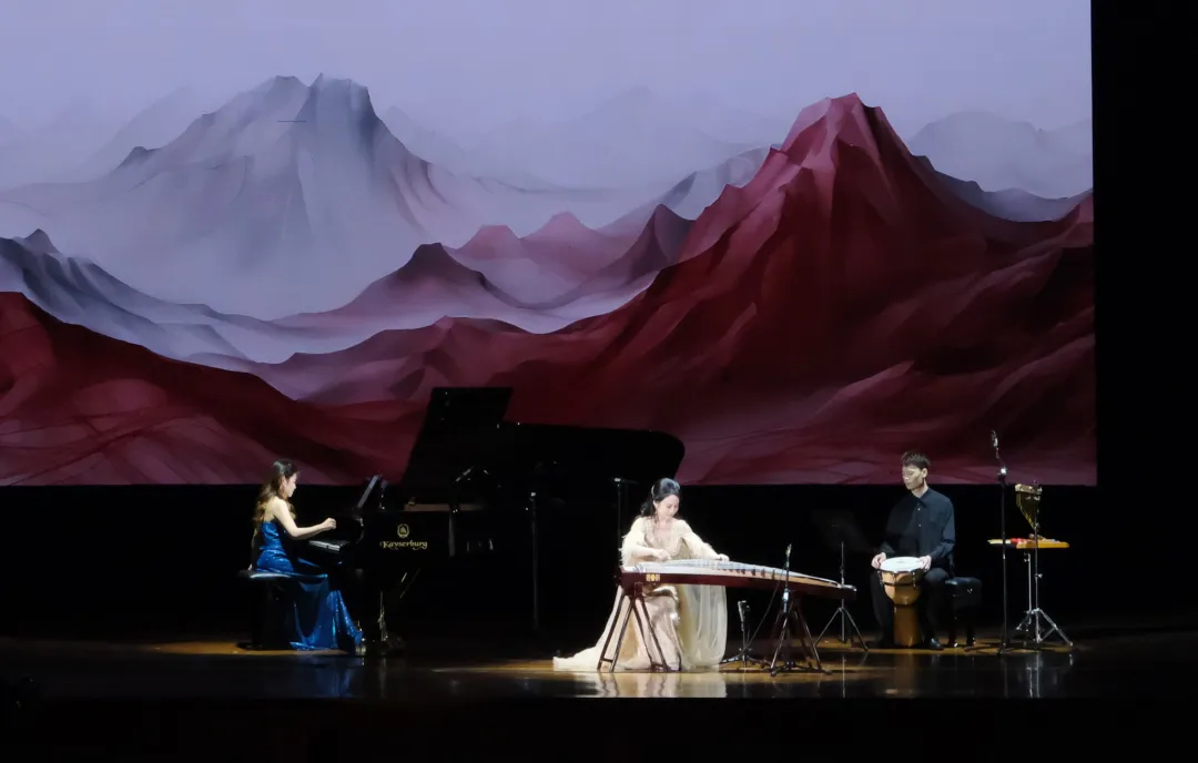 Gao Yang, Li Siyuan and Lin Weidong played the guzheng repertoire Cang Ge Yin and integrated guzheng, piano and percussion instruments to expressed their admiration for life. Zhao, Li and Wang Yiting played the Cantonese song Colorful Clouds Chasing the Moon and Brahms Hungarian Dance No. 5 in four hands, showing the Eastern and Western nationalities.