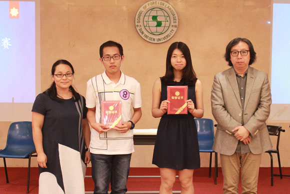 On May 7, 2017, the First “College English Cup” Interpreting Contest Final was successfully held by the School of Foreign Languages at Sun Yat-sen University. A total of 92 students from different schools and majors signed up for the preliminary, 24 of whom gained qualification for the semi-final, and 12 made it to the final. The first prize was awarded to two students who minored in Translation and Interpreting, Mou Zekun from the School of Life Sciences, and Zhang Jiaxin from the School of Sociology and Anthropology.