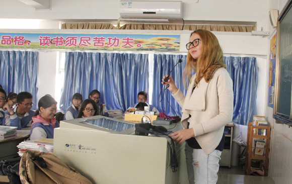 On the afternoon of December 12, 2014, the voluntary teaching program “VOLUNTARY Cultural Tour, TEACHING You & Me Together” was held in Zhuhai Experimental Middle School. It was co-organized by the International Student Association (ISA) of School of International Studies, Sun Yat-sen University and Zhuhai Experimental Middle School. The attendees included ISA tutor Ye Weiyin, foreign teacher of School of Foreign Languages Sven Albrecht, international students Santana Bugzel, Collin Schaefer, Pawel Jan Gawronski, Jonas Matthias Sassin, Daria Chepruchenko, Irina Goruleva and Leyla Al-Khamza, as well as other members and volunteers of the ISA.