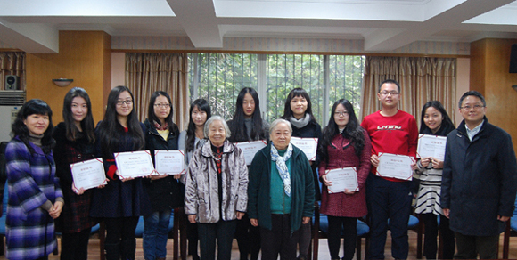 On the afternoon of December 20, the School of Foreign Languages (FLS) held the 2013 Award Ceremony for Excellent Service Award of Sun Yat-sen University and the First Dai Liuling Scholarship. Ms. Xu Kaishu, wife of late Professor Dai Liuling, and her sister Ms. Xu Kaijun were invited to the event. Presided over by Deputy Secretary Cao Xin, the ceremony was joined by Dean Chang Chenguang, Secretary Xu Dongli and Vice Dean Xu Aihong.