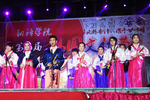 Enthusiastic cheerleading dance and graceful etiquette show won thunderous applauses. Warm speeches captured the heart, while pure Korean songs lingered in the mind. The traditional Korean puppet dance with lovely movements and wonderful melodies drove the audience to dance to the music. The gala ended with a chorus “Seoul” sung by the whole Korean class. The touching melody seemed to be telling the twenty-one years of friendship between China and Republic of Korea.