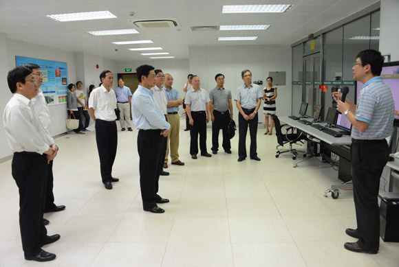 On the afternoon of October 10, Chen Yunxian, Vice Governor of Guangdong Province, led a group of leaders of the provincial departments to conduct survey and research about Guangzhou Supercomputing Center (GSC) in SYSU and held a meeting. Xu Ningsheng, President of SYSU; Li Handong, Deputy Secretary-General of Guangdong Provincial Government; Huang Ningsheng, Director General of Guangdong Provincial Department of Science and Technology; Wang Dong, Deputy Mayor of Guangzhou; Wei Zhonglin, Deputy Director General of Department of Education of Guangdong Province; Chen Shaokang, Deputy Secretary-General of Guangzhou Municipal Government; Ma Shu, Deputy Secretary of Bureau of Science, Technology and Information of Guangzhou Municipality; Jing Guangjun, Deputy Director of Bureau of Science, Technology and Information of Guangzhou Municipality; Lu Zexin, Head of Guangzhou Work Group of National University of Defence Technology (NUDT); and Li Mengfeng, Vice President of SYSU, attended the meeting. The meeting was presided over by President Xu Ningsheng.