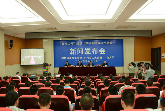 On the afternoon of June 17 (Beijing time), the world supercomputer organization TOP500 officially announced the 41th TOP500 list of world supercomputers at the 2013 International Supercomputing Conference in Leipzig, Germany. Tianhe-2 supercomputer system developed by National University of Defense Technology heads the list again after Tianhe-1 became the first Chinese supercomputer champion in 2010. Tianhe-2 will be transferred to Guangzhou Supercomputing Center on East Campus of Sun Yat-sen University later this year, and put into operation in the fields including mega science, large projects, industrial upgrading and informationization.