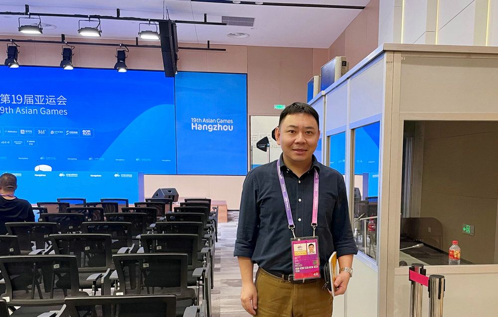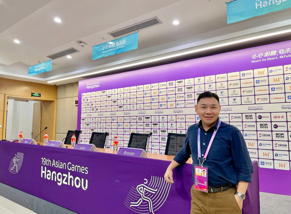 Prof Zhan Cheng at Main Media Centre of the Hangzhou Asian Games