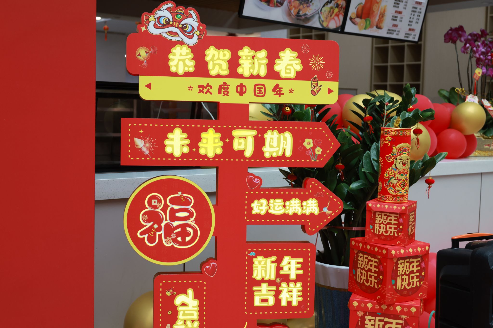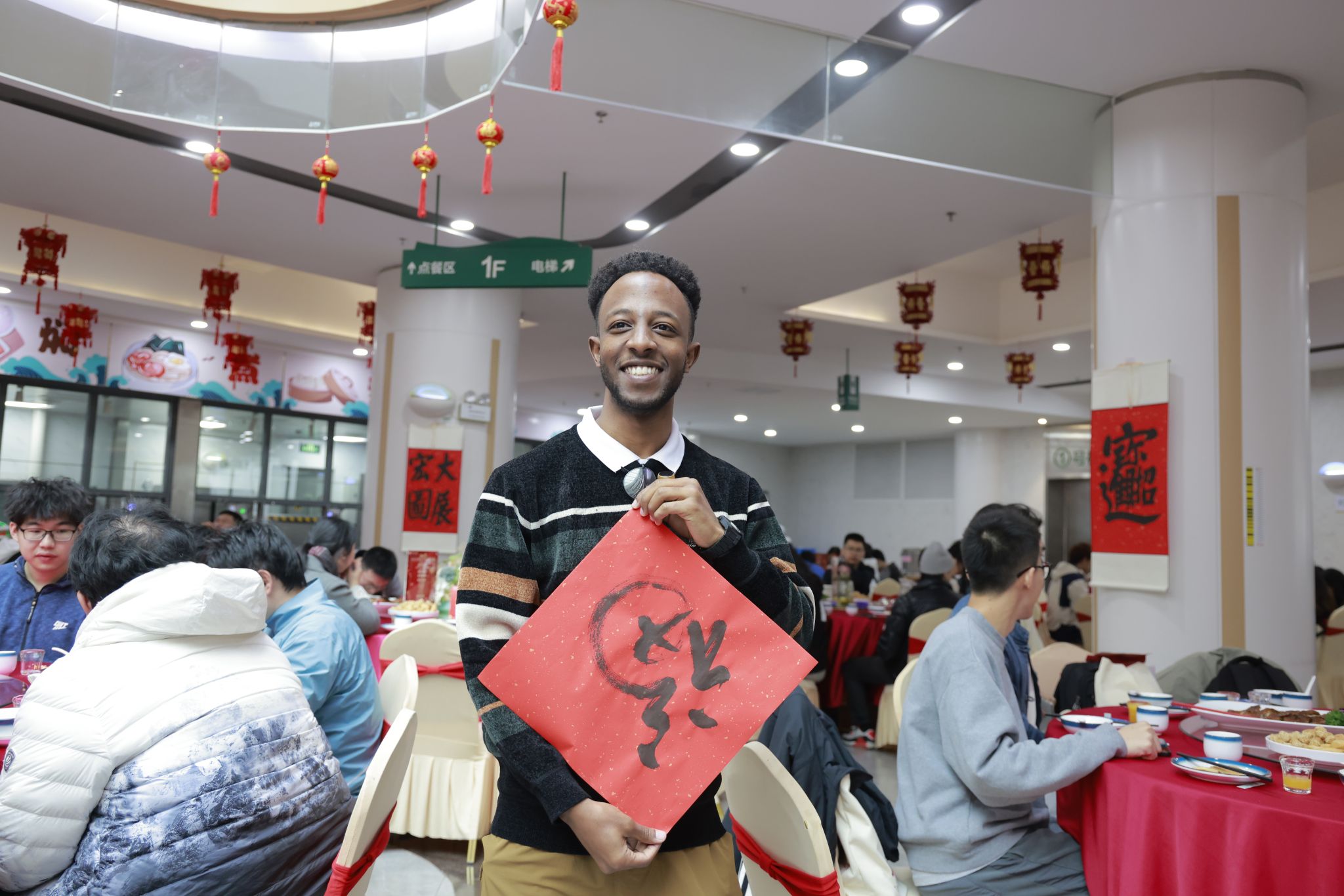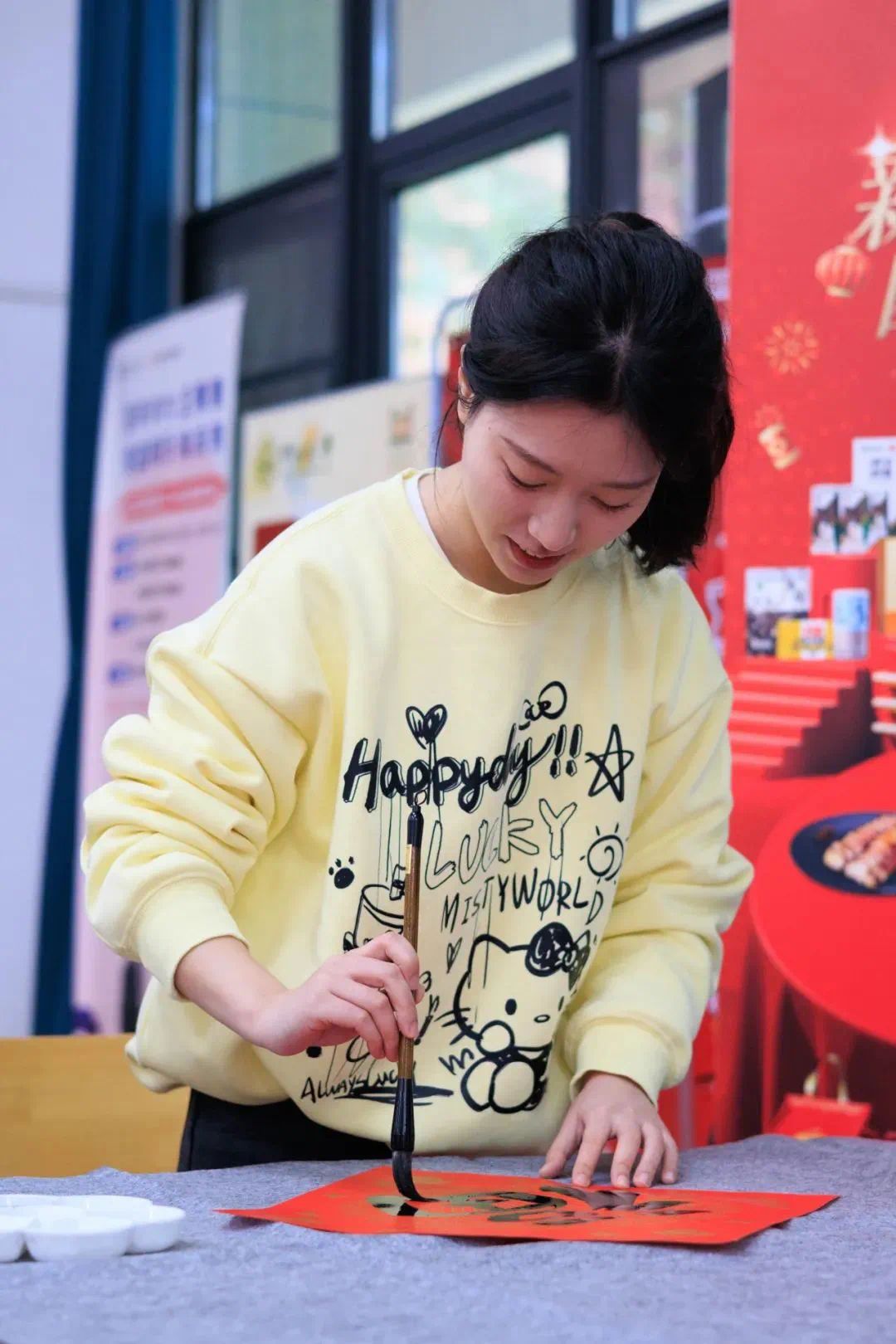 During the celebration event, students experienced traditional Spring Festival culture through activities such as writing Spring Festival couplets (chunlian), as well as writing the Chinese character fu, which means happiness and luck, on red paper.