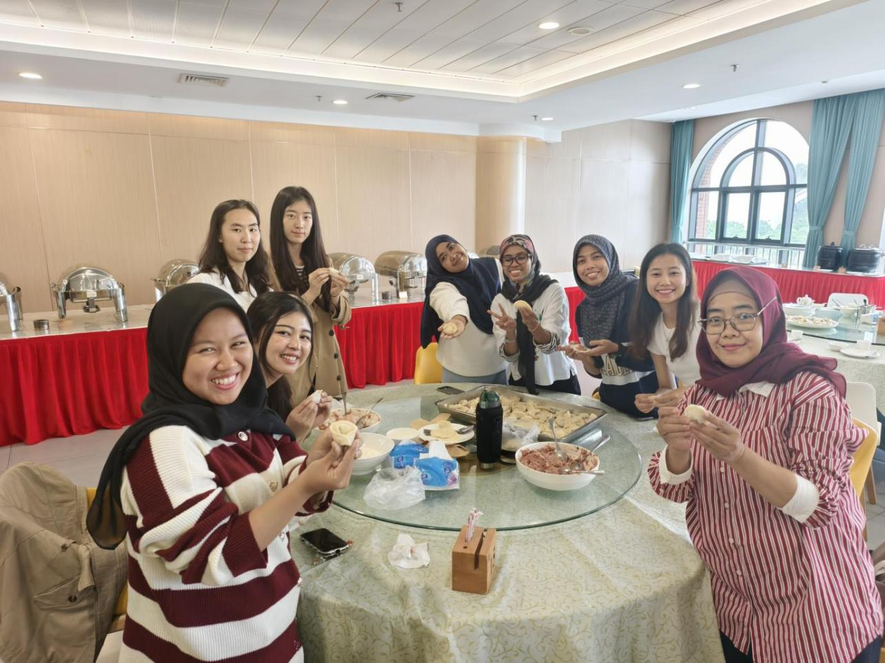 Making dumplings, joining badminton games, and costume & food exchange events to strengthen friendships and promote international communication;