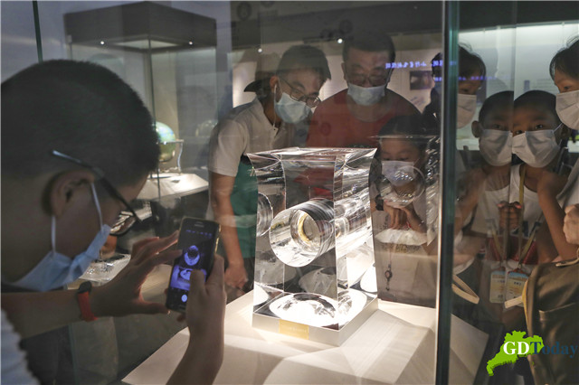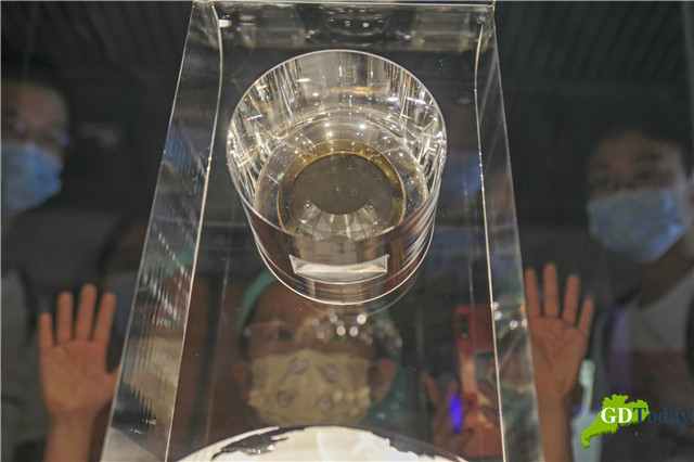 People view the lunar soil brought back by China's Chang'e-5 lunar probe at the Shenzhen Museum on July 13, 2021. (Photo: Zhu Hongbo)
